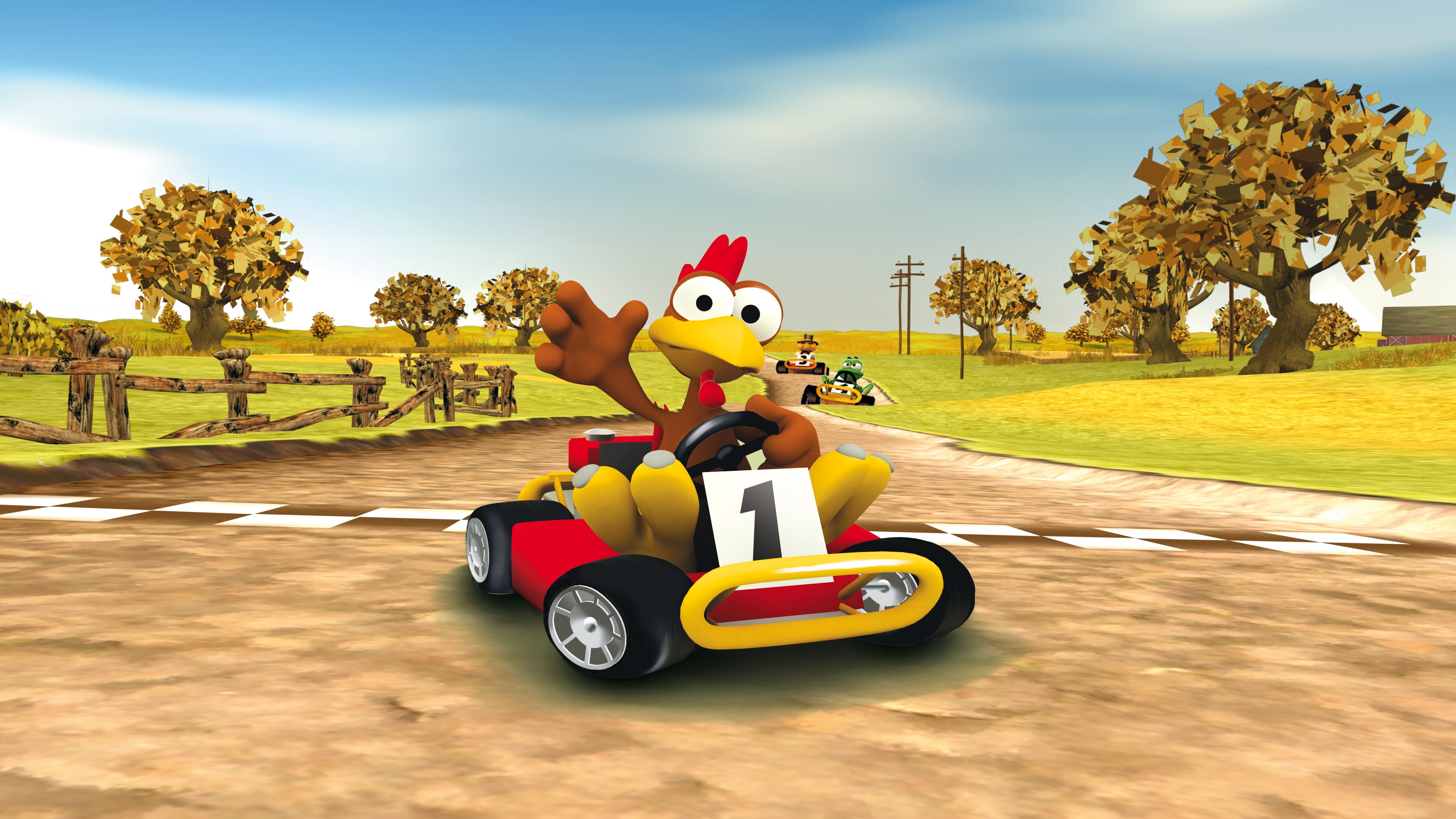 The racing classic remastered! The world's craziest chicken takes on daredevil courses in this fast-paced kart racing game! Start as a grouse or choose your favourite driver from the grouse family. Collect weapons and power-ups as you race around the tracks – fire them skillfully to run your opponents off the road. What are you waiting for? Watch those sparks fly!