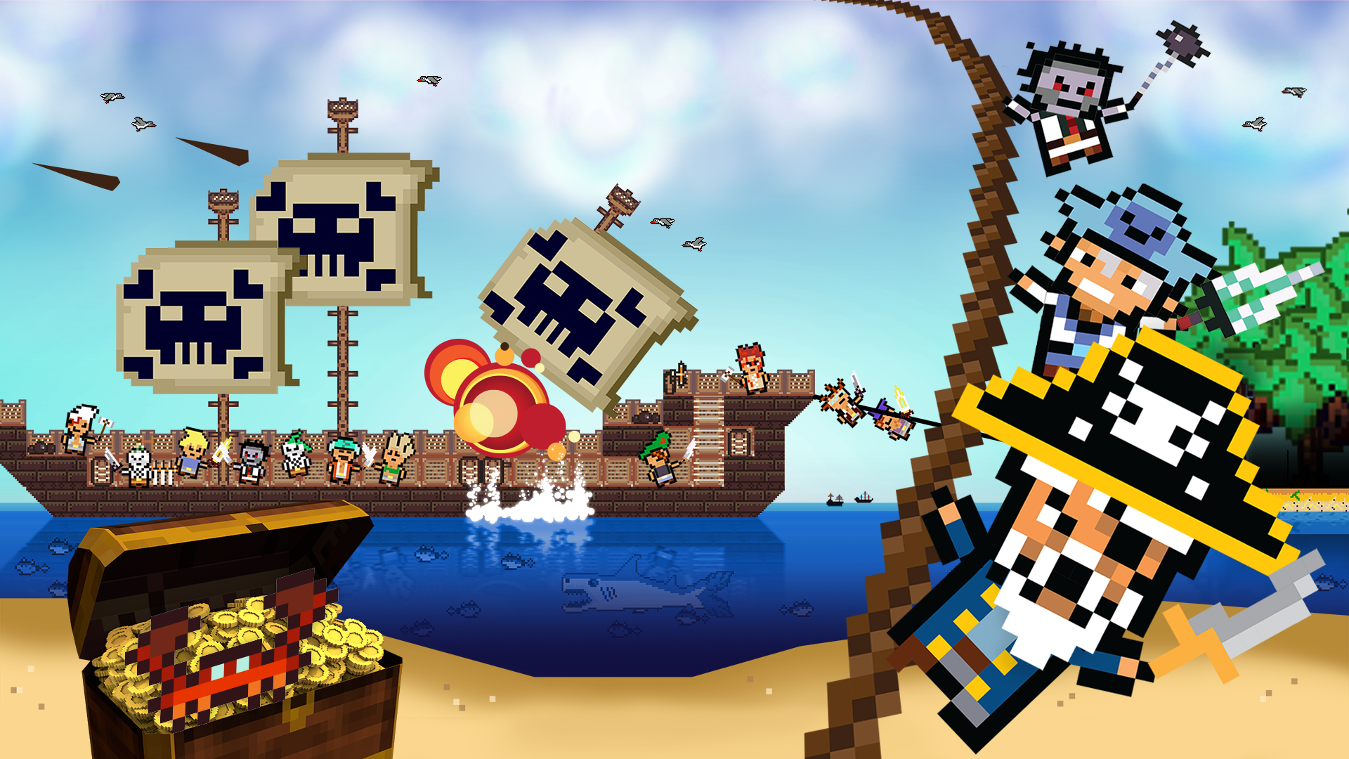 Presented by the creators of TERRARIA. Lead the life of a pirate captain in this open world sim! Recruit a crew, outfit them, customize your ship and set sail! Use any combination of aggression, diversion and trade to become the most infamous pirate crew out there!