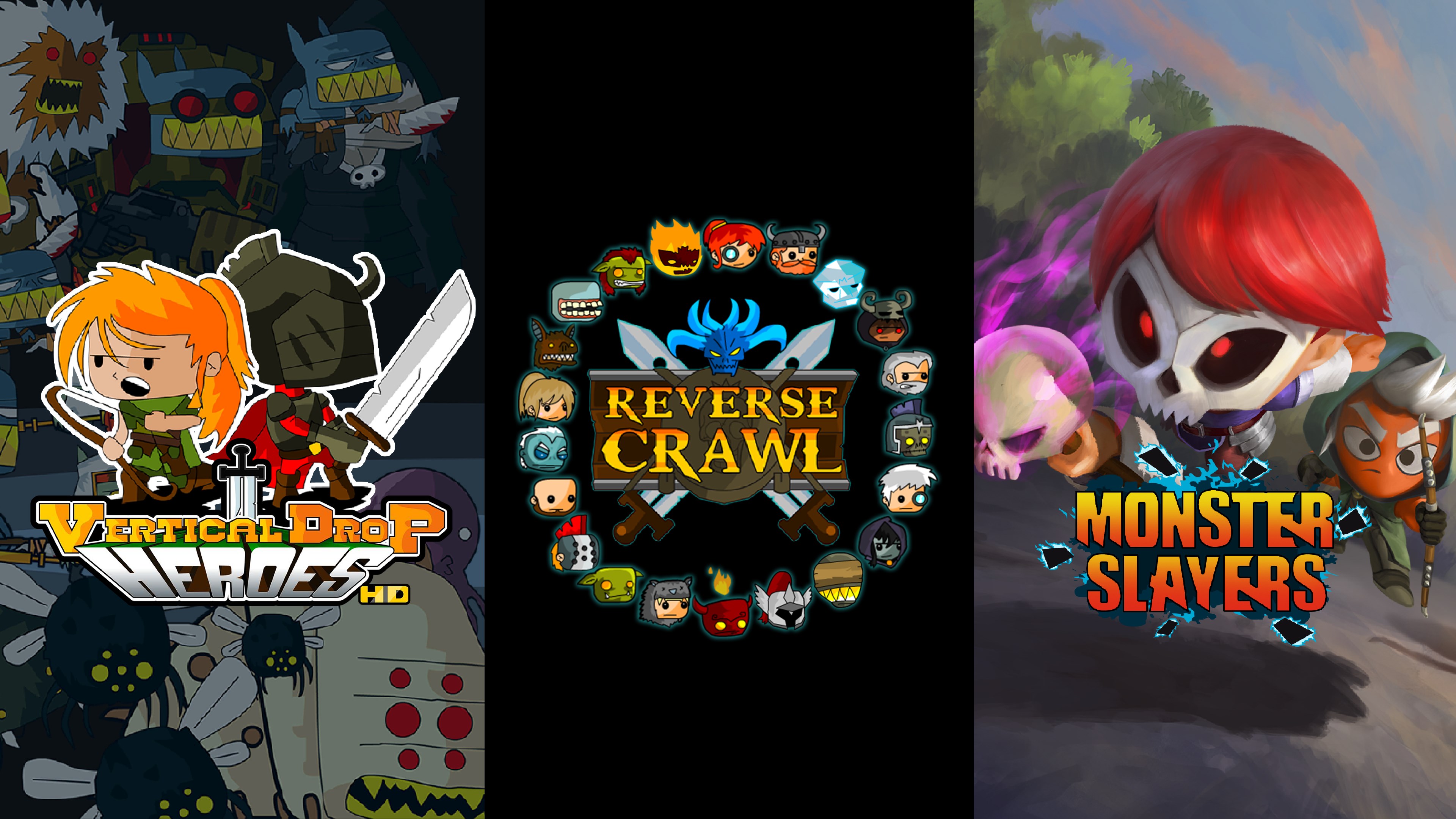 One-man indie developer Nerdook is a master at making games that are easy to pick up and play, but impossible to put down. This collection includes three Nerdook gems: Monster Slayers, Reverse Crawl, and Vertical Drop Heroes.