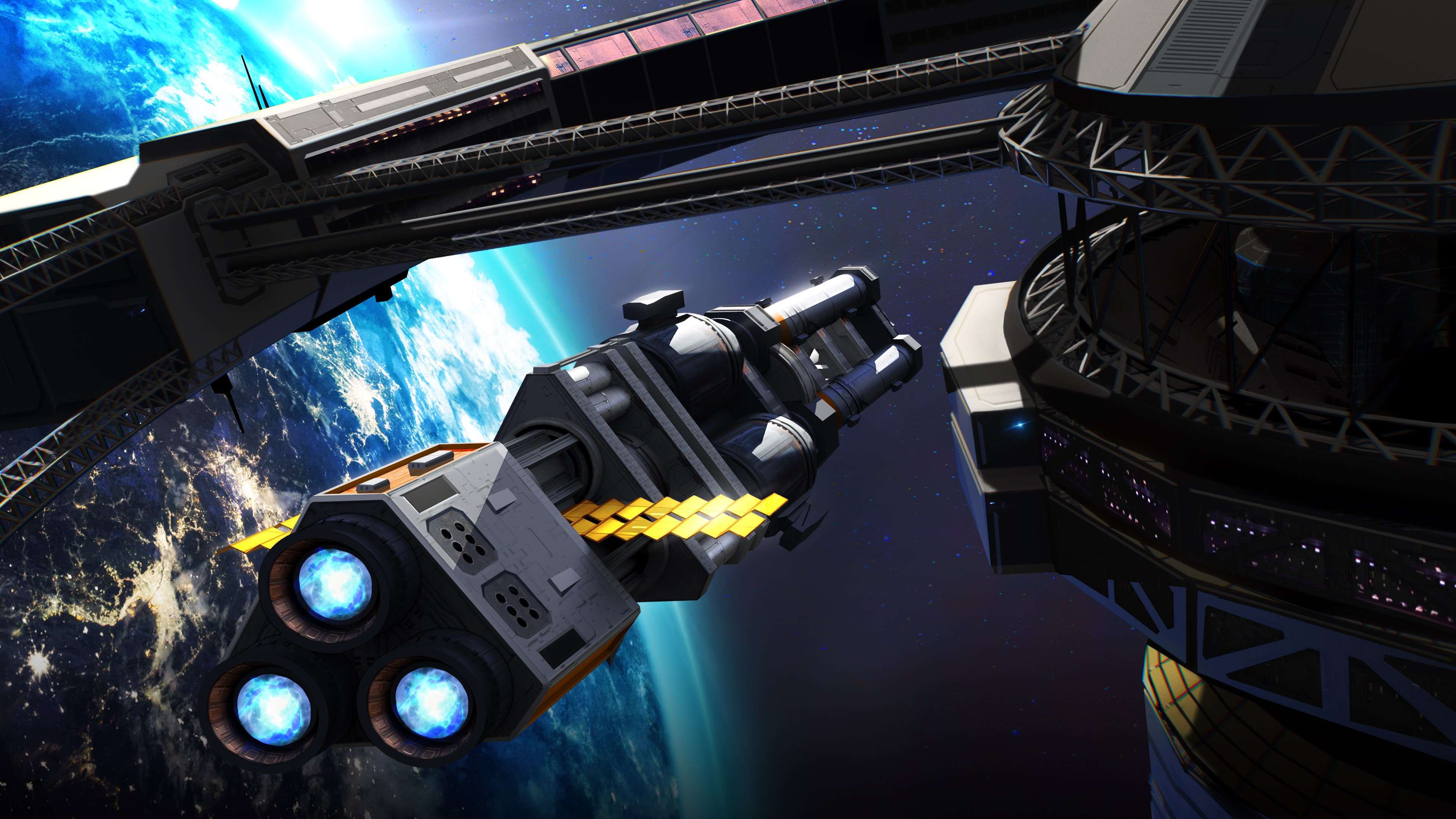 • Tactical combat is built around a realistic simulation of Newtonian physics, where momentum and maneuver in 3D space are just as important as the firepower your ships carry. Fire missiles and use point defense cannons to destroy incoming projectiles; build up momentum then swing hard to bring the enemy into your firing arcs; or grapple with the difficult decision to retract radiators and sacrifice heat dissipation to achieve better armor against an incoming enemy barrage.