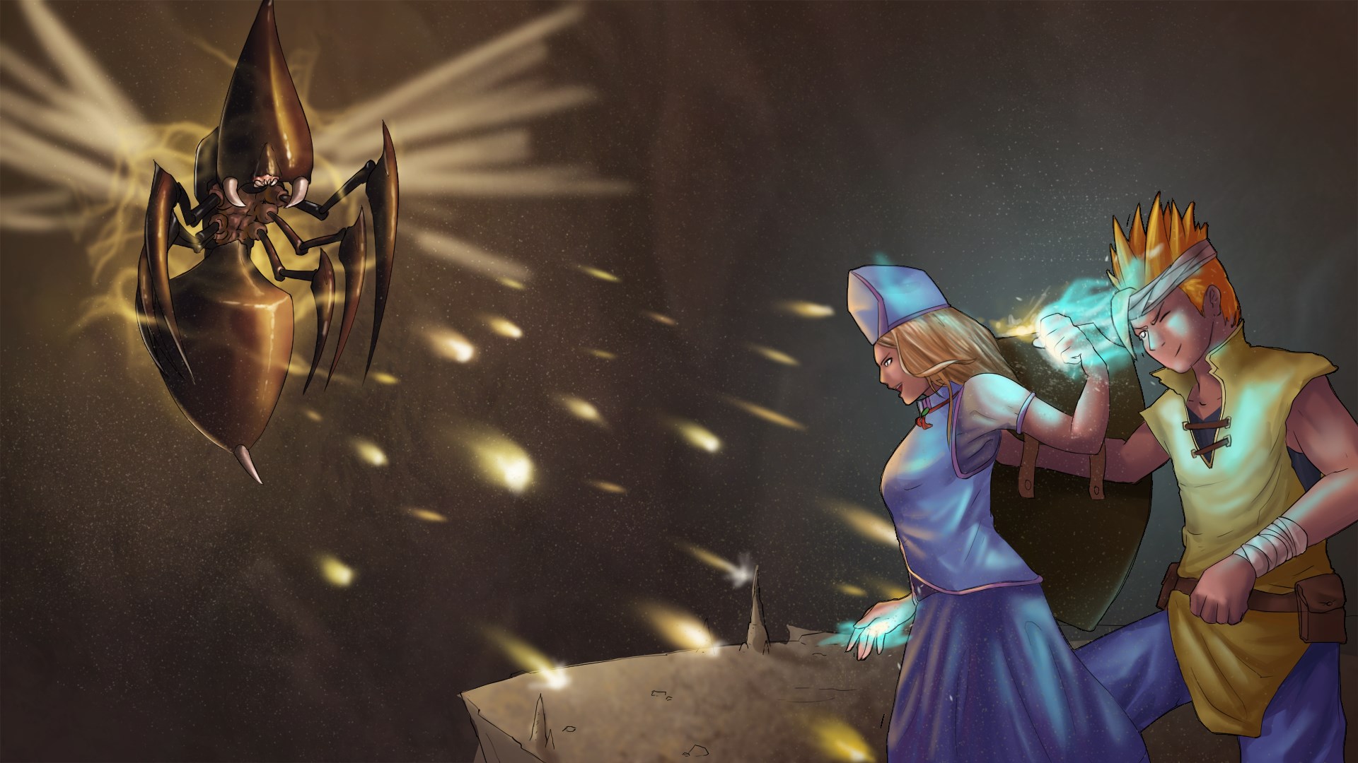 After the banishing of the previous defender of your island, the community needs new heroes. The long training of siblings Elia and Zoel takes them to the last trials deciding who is the best fit to become the new local guardians. In the finals, they will have to compete against a sleazy couple and the clock to prove their worth. Rising to the top will not be an easy feat!