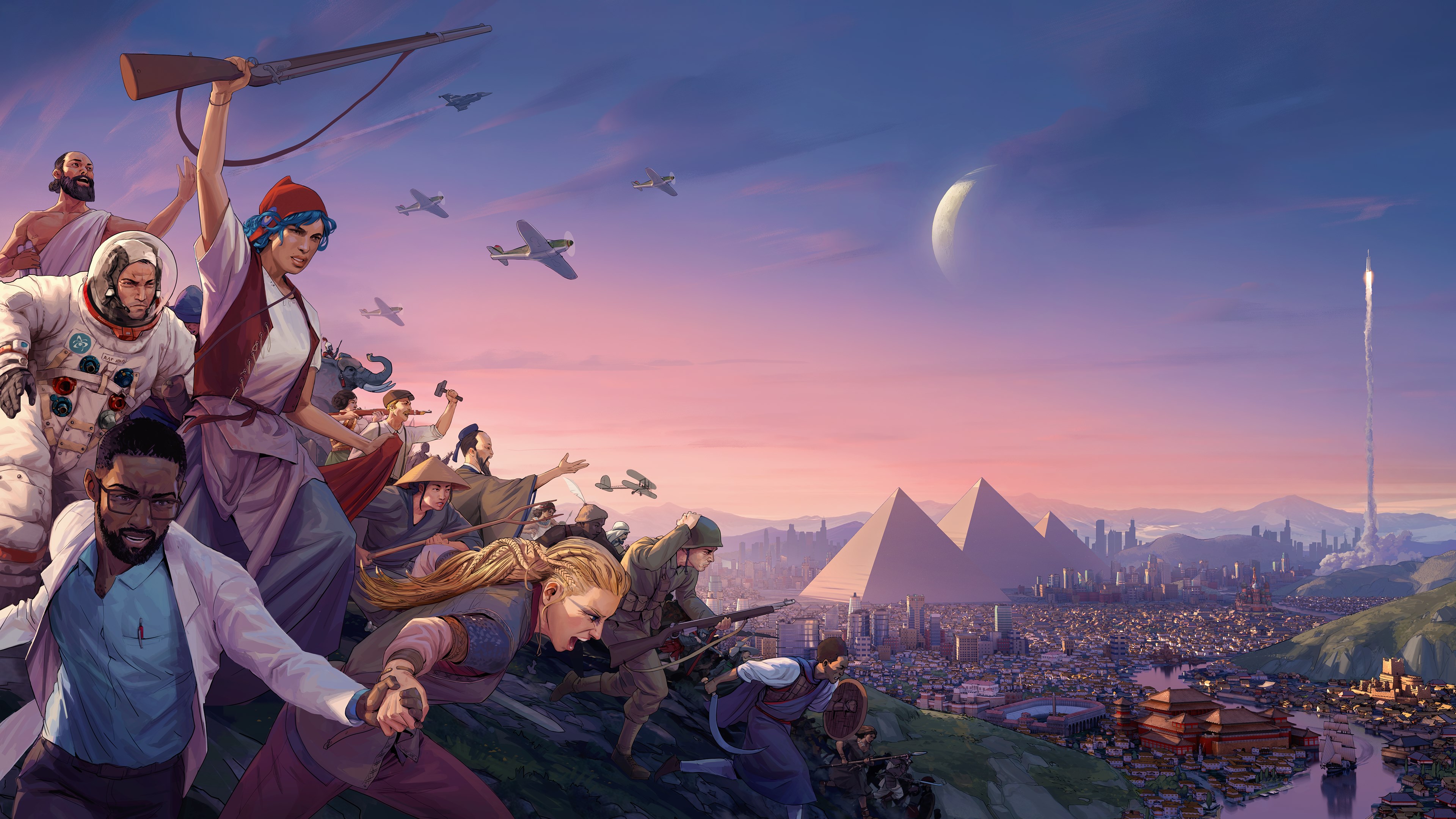 Combine up to 60 historical cultures as you lead your people from the Ancient to the Modern Age. From humble origins as a Neolithic tribe, transition to the Ancient Era as the Babylonians, become the Classical era Mayans, the Medieval Umayyads, the Early Modern era British, and so on. Each culture will add its own special gameplay layer, leading to near-endless outcomes.