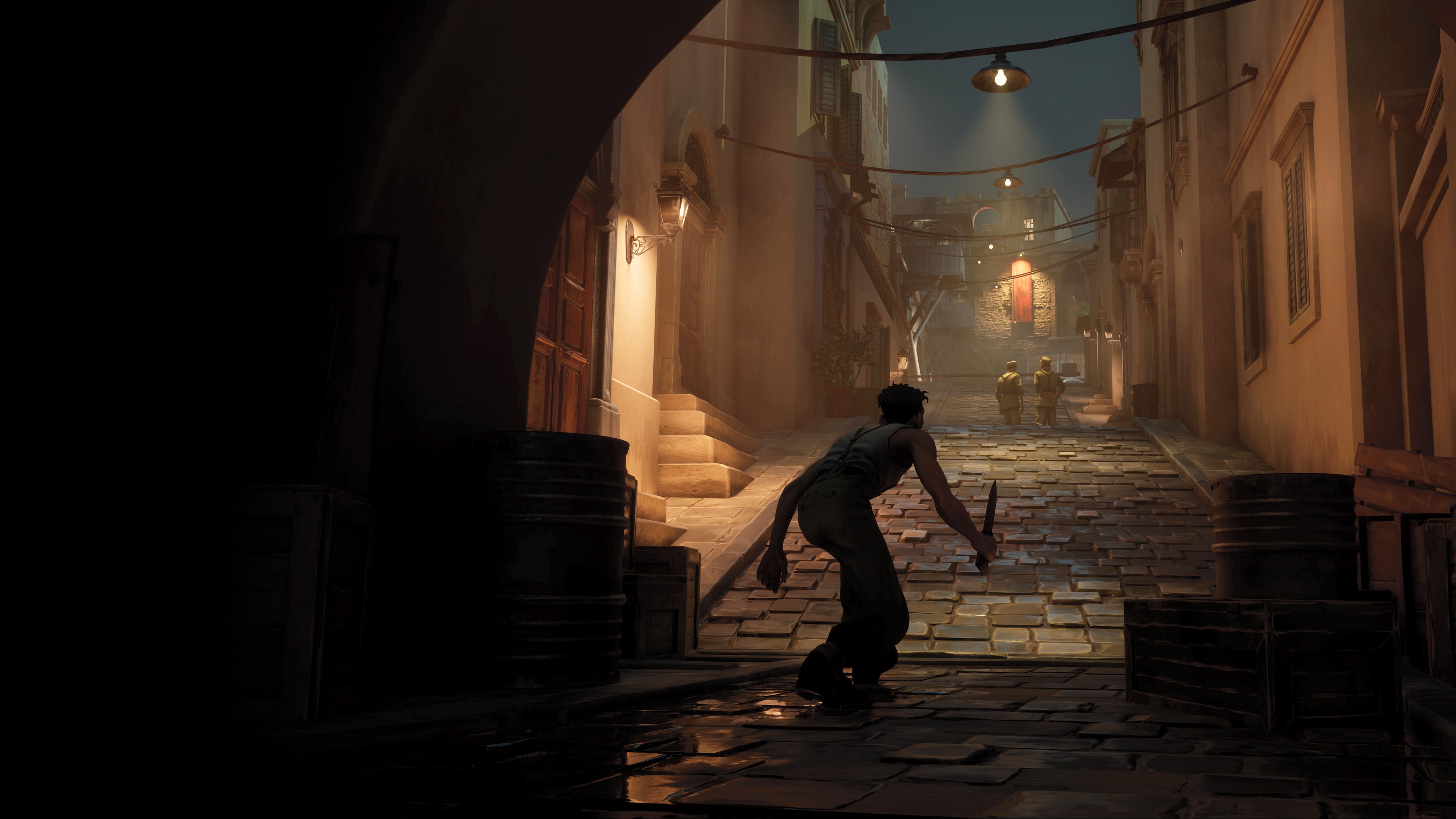 Each mission begins in the enemy’s backyard, where you’ll stalk Nazis, assassinate guards, and set traps to frighten your foes. Enemy awareness is shared and persistent—kill carelessly and patrols respond, wait too long and reinforcements arrive. Stealth isn’t about avoiding the fight. It’s about stacking the odds before the true combat begins.