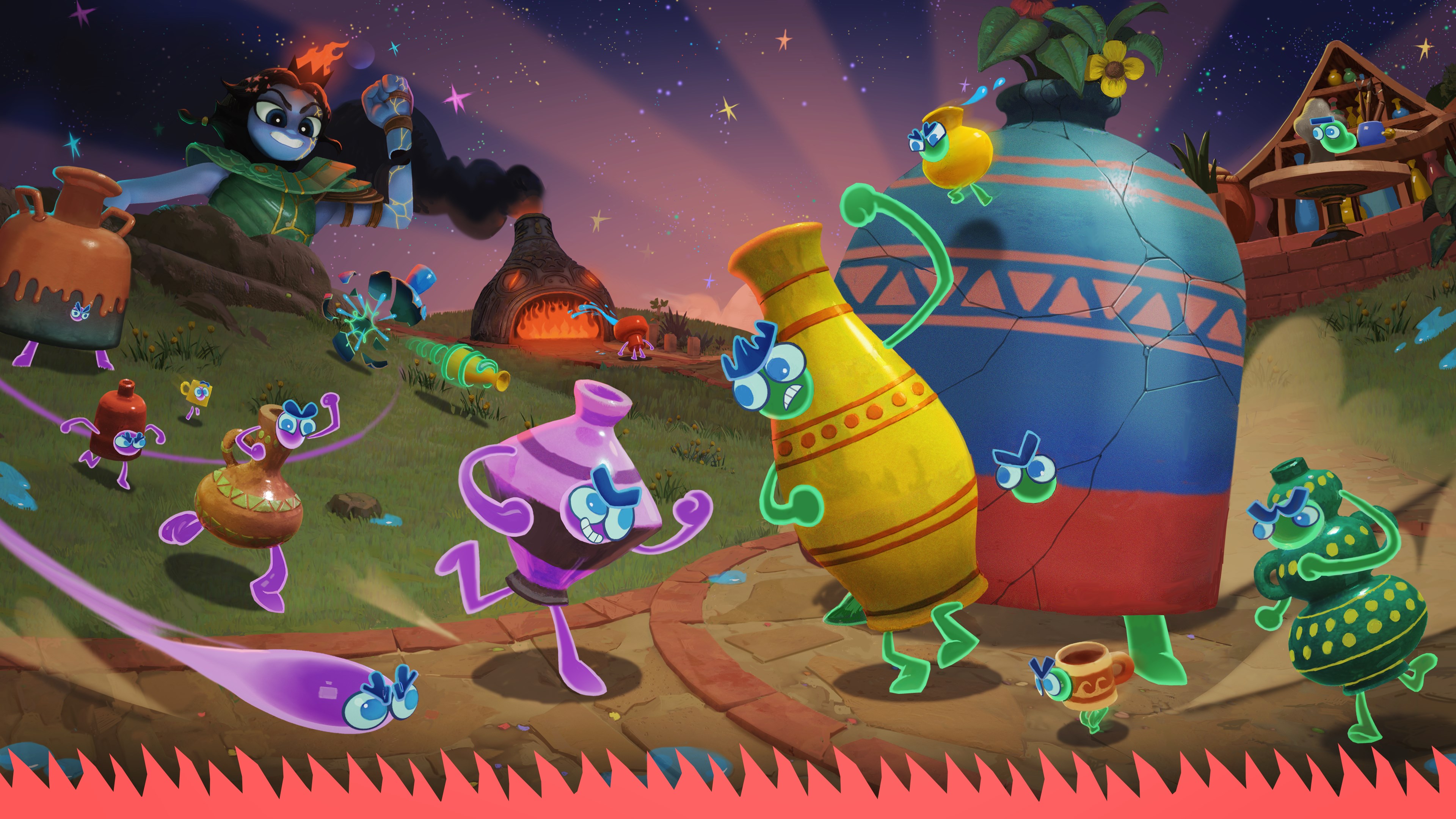 There are a multitude of different sizes and combinations to discover, each with unique abilities and attacks, along with new and surprising ways to play. Work together to find the best combination of pots and play-styles to break through enemy lines, and collect enough water to douse the flames of the enemy’s kiln — Does your team have what it takes to shape and smash your way to victory? As the battlefield becomes strewn with the shattered fragments of friend and foes alike, your brawling skills and some great teamwork will be required to assure victory.