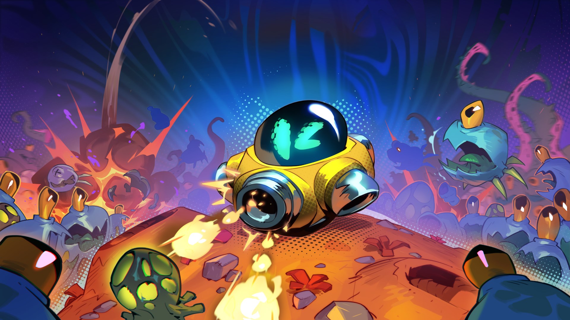 Dive into an action-packed shoot 'em up where every drop onto the planet could be your last. Fight through endless waves of increasingly deadly alien monsters while collecting powerful upgrades to aid you in battle. You can escape at any time, but beware — death resets your score to zero!